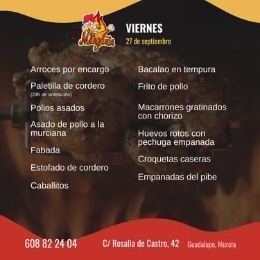 Asadero La Margarita es un pequeño local de preparación de comida casera, paellas, parrilladas y pollos asados durante el horario diurno, y en el que por la noche puedes pedir diferentes bocadillos, pizzas, hamburguesas y variados acompañamientos. Centrado en un servicio cercano y de calidad hace la vida más fácil a los vecinos y universitarios del barrio.